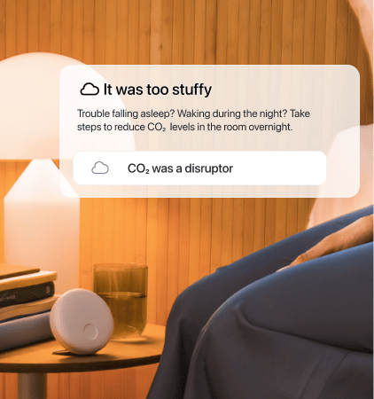 Understand how the air in your bedroom changes during the night. Not only comfort factors like humidity and temperature, but by tracking the levels of CO₂ that can impact your ability to get a restful night of sleep.